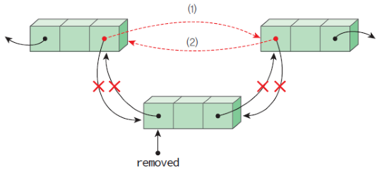 (2)는 removed의 rlink의 llink가 removed의 llink를 가리키게 합니다.