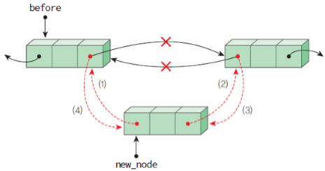 (4)는 before의 rlink가 new_node를 가리키게 합니다.