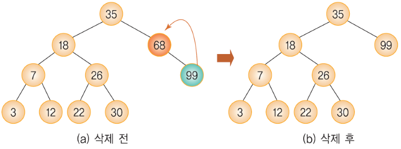 삭제할 노드가 (3) 두 개의 서브트리를 가지고 있는 경우