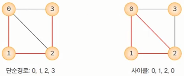 단순 경로(simple path)는 경로 중에서 반복되는 정점이 없는 경로입니다.
