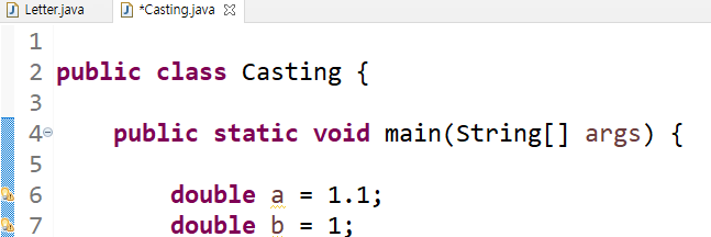 실수의 값이 들어갈 변수b는 값이 정수인 1이지만 오류가 없다. 이것은 변수b를 자동으로 변수a로 Converting 한 것이다. (=손실되는 값이 없으므로 자동으로 Converting하는 것이다)