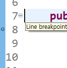 원하는 코드 줄번호에서 더블클릭을 하면 파란색 점이 생기는데 이것을 Breakpointer라고 한다. (다시 더블클릭하면 사라진다. )