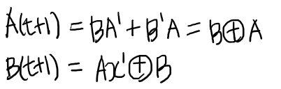 - 현재상태 A1과 다음상태 A1이 1과 1로 같아서 0. (1 xor 1)